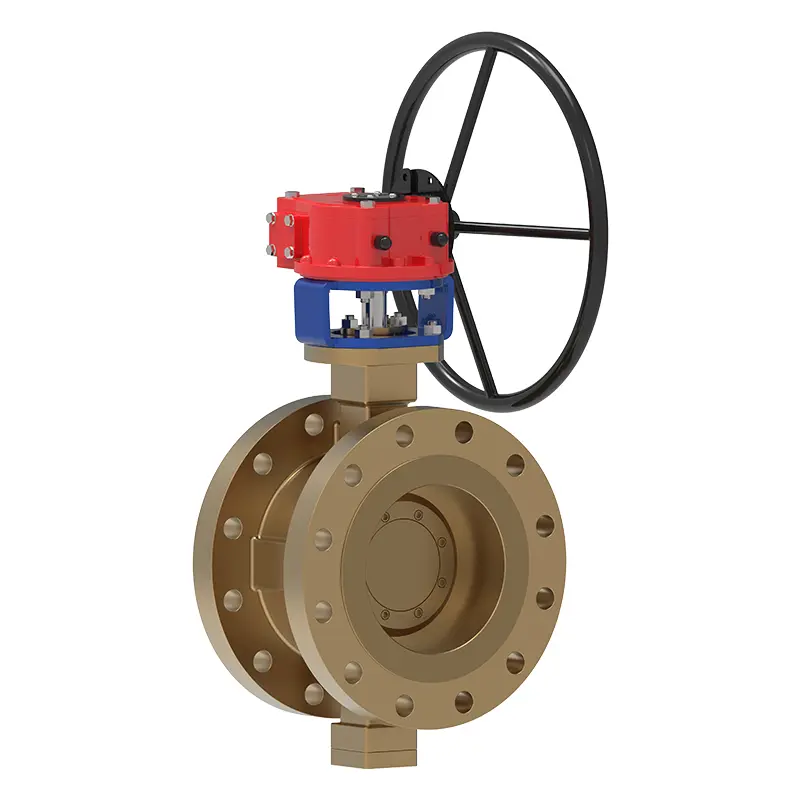 Bronze drievoudige excentrieke flensvlinderventiel is geschikt voor zeewaterbehandeling bij olie- en gasactiviteiten en is duurzaam.